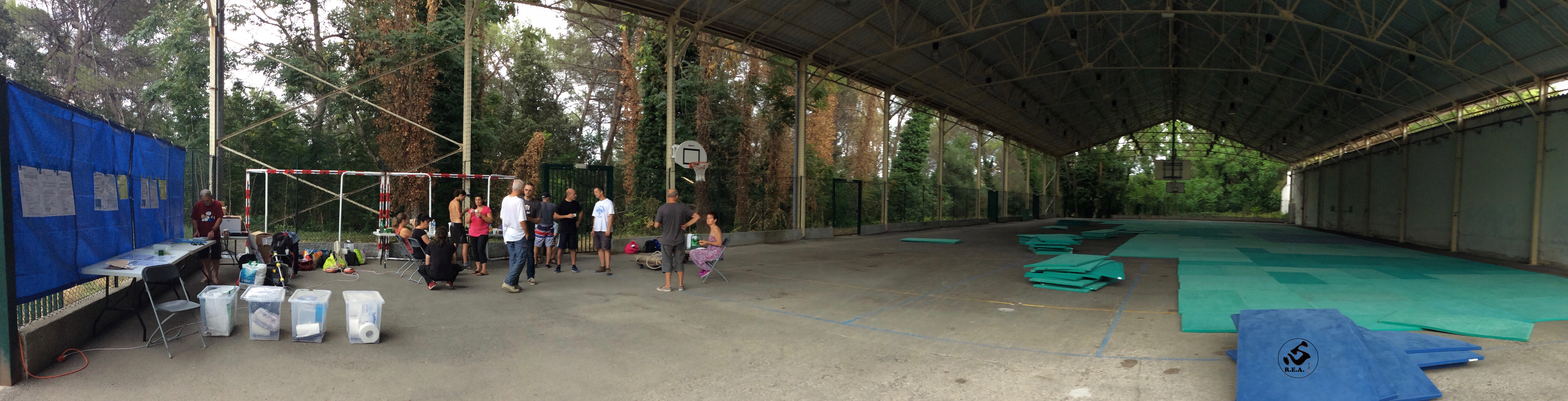 L’équipe de bénévoles et la mise en place de tatamis.